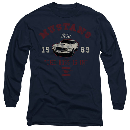 Ford Mustang Mustang The Boss Is In Mens Long Sleeve Shirt Navy Officially Licensed