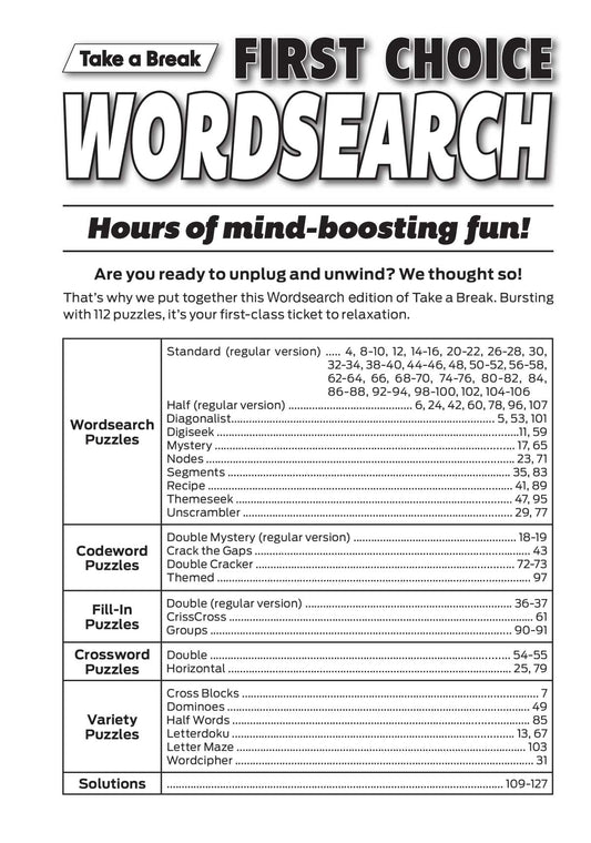 Take a Break - First Choice Word Search: 100+ Puzzles, Codewords, Fill-Ins, Crosswords, Variety Puzzles, Solutions, Word Game Fun For Everyone, Relax, Unwind Your Way, Unplug, Reduce Stress & Solve!
