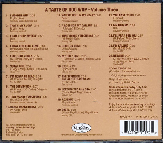 Rhythm Aces The Dells The Delegates Etc A Taste Of Doo Wop Volume 3 Music CD