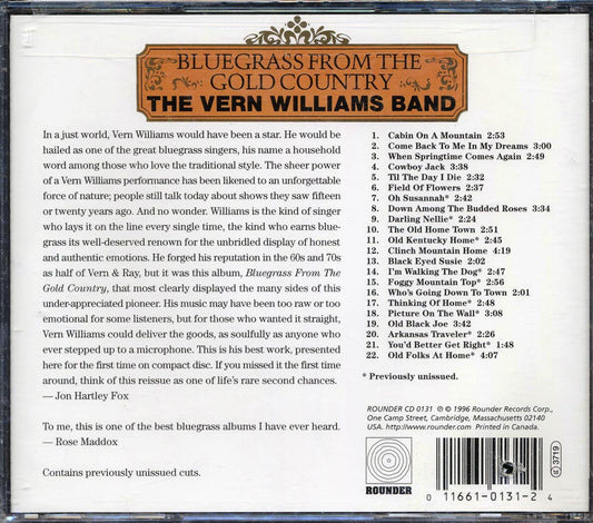 Vern Williams Band Bluegrass From The Gold Country 22 tracks marked/ltd stock Music CD