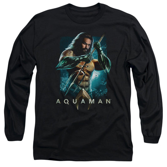 Aquaman Movie Trident Mens Long Sleeve Shirt Black Officially Licensed