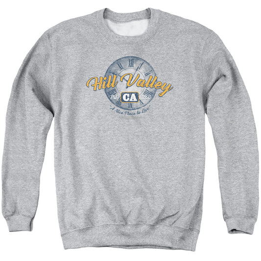 Back To The Future Hill Valley Mens Crewneck Sweatshirt Athletic Heather Officially Licensed