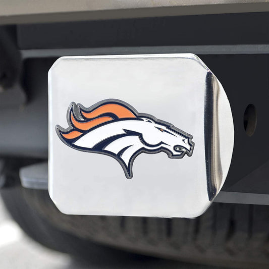 Denver Broncos Hitch Cover Solid Metal with Raised Color Metal Emblem 2" Square Type III