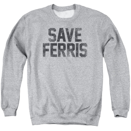 Ferris Bueller Save Ferris Mens Crewneck Sweatshirt Athletic Heather Officially Licensed