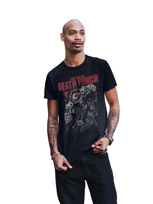 Five Finger Death Punch Both Barrels Jumbo Print Officially Licensed Mens T Shirt Black