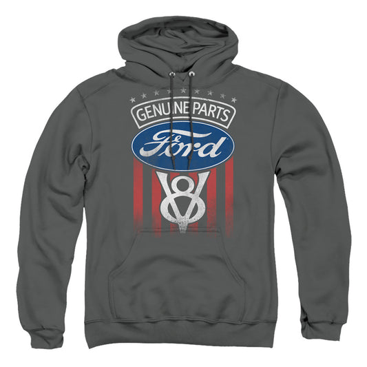 Ford V8 Genuine Parts Mens Heather Hoodie Black Officially Licensed