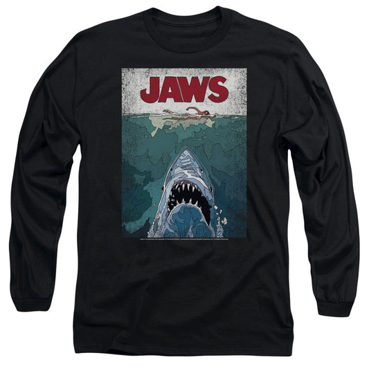 Jaws Lined Poster Mens Long Sleeve Shirt Black Officially Licensed