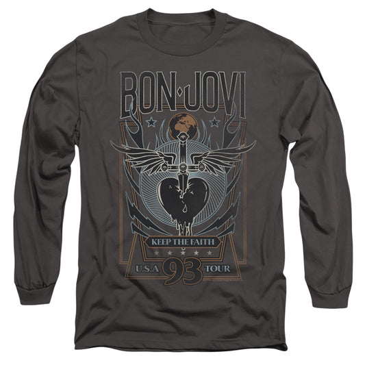 Bon Jovi Keep The Faith Mens Long Sleeve Shirt Charcoal Officially Licensed