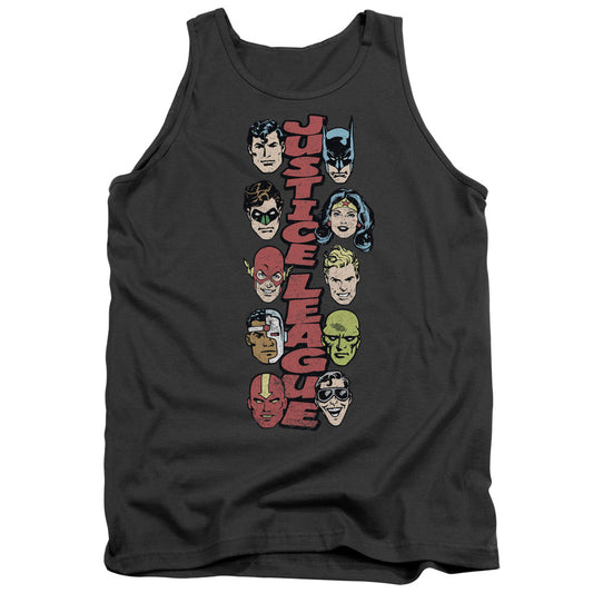 Dc Stacked Justice Mens Tank Top Shirt Charcoal Officially Licensed
