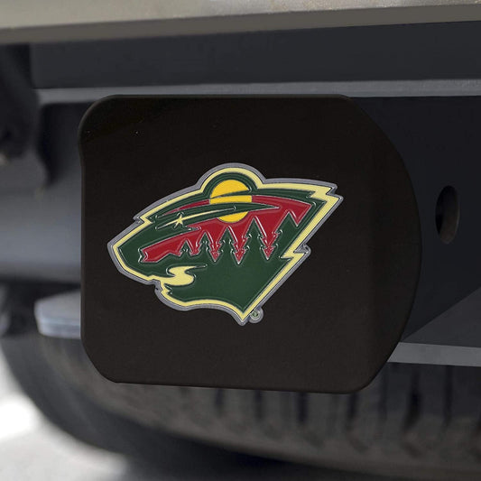 Minnesota Wild Solid Metal Black Hitch Cover with Color Metal Emblem 2 Inch Square Type III