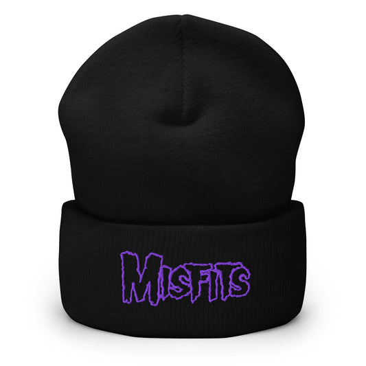 Misfits Purple on Black Cuffed HD Embroidered Beanie Hat Black Officially Licensed