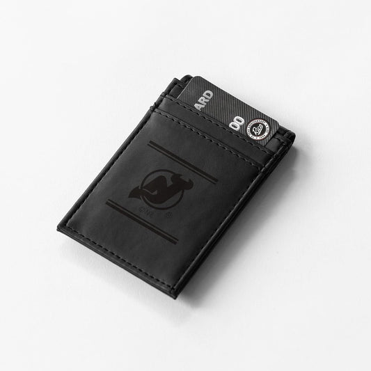 New Jersey Devils Premium Black Leather Wallet, Front Pocket Magnetic Money Clip, Laser Engraved, Vegan
