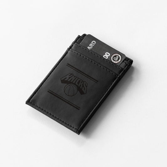New York Knicks Premium Black Leather Wallet, Front Pocket Magnetic Money Clip, Laser Engraved, Vegan