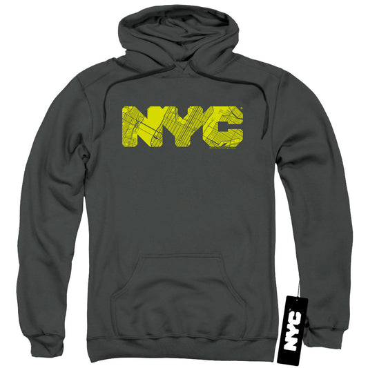 New York City Nyc Map Fill Mens Hoodie Charcoal