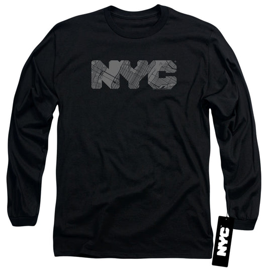 New York City Nyc Map Fill Mens Long Sleeve Shirt Black