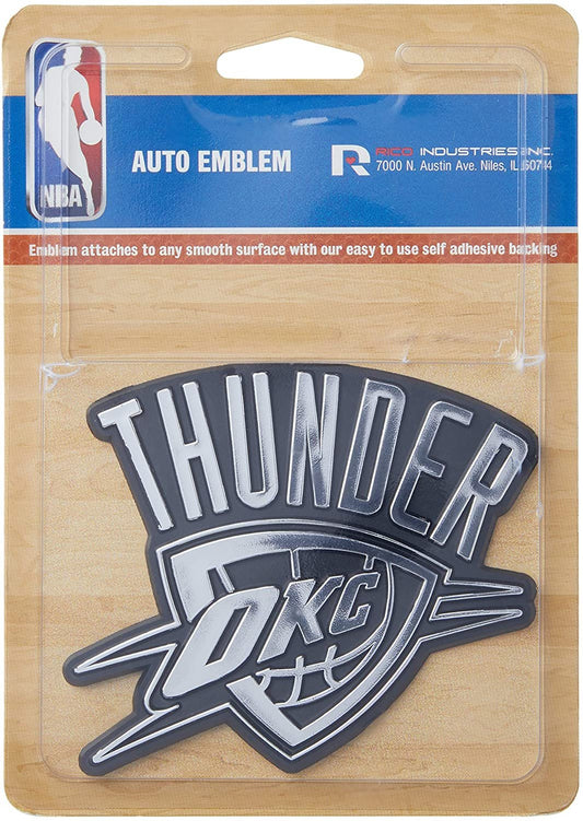 Oklahoma City Thunder Silver Chrome Color Auto Emblem, Raised Molded Plastic, 3.5 Inch, Adhesive Tape Backing