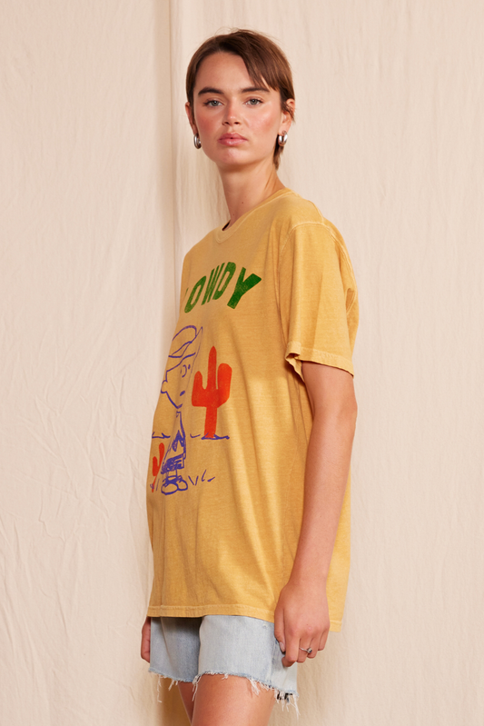 Peanuts Cowboy Charlie Womens Tee Shirt Mustard