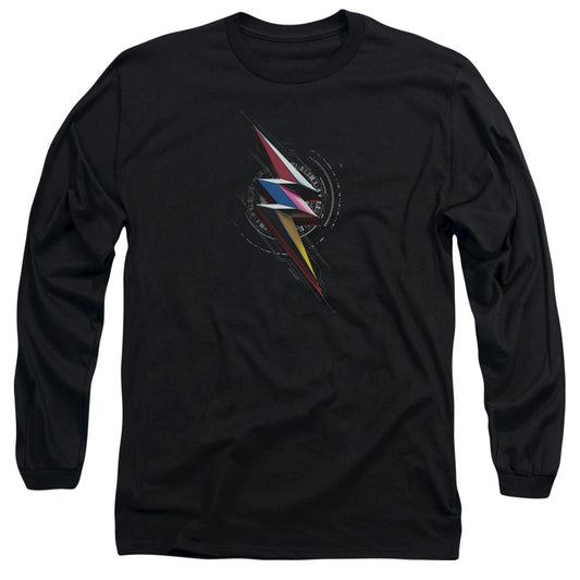 Power Rangers Bolt Sigil Mens Long Sleeve Shirt Black Officially Licensed