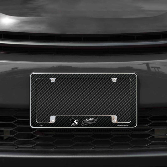 San Jose Sharks Metal License Plate Frame Chrome Tag Cover, Carbon Fiber Design, 6x12 Inch