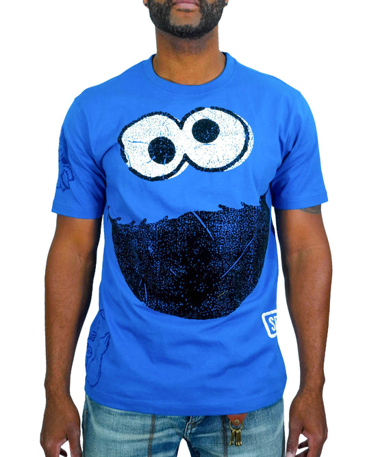 Sesame Street Cookie Eyes Mens Hoodie Royal Blue Officially Licensed
