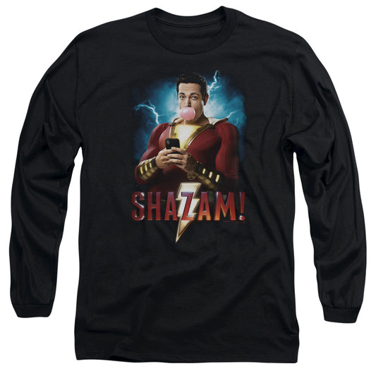 Shazam Movie Blowing Up Mens Long Sleeve Shirt Black Officially Licensed