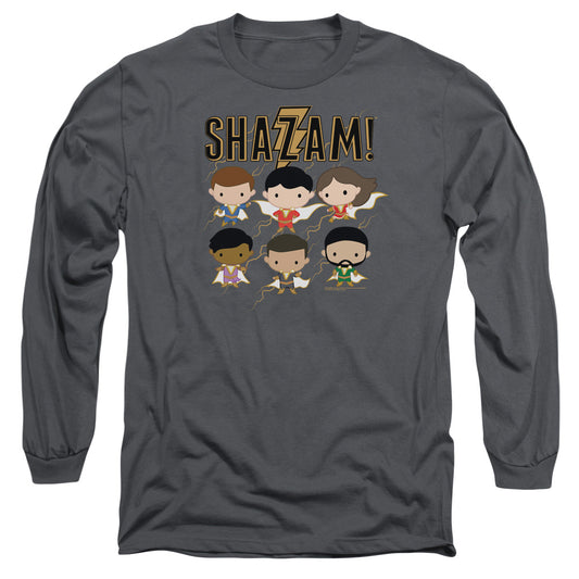 Shazam Movie Chibi Group Mens Long Sleeve Shirt Charcoal Officially Licensed