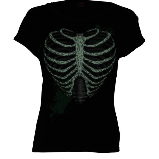 HEART RIBS - GLOW IN THE DARK - Boatneck Cap Sleeve Top Black