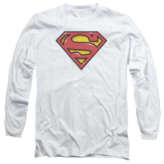 Superman Airbrush Shield Mens Long Sleeve Shirt White Officially Licensed