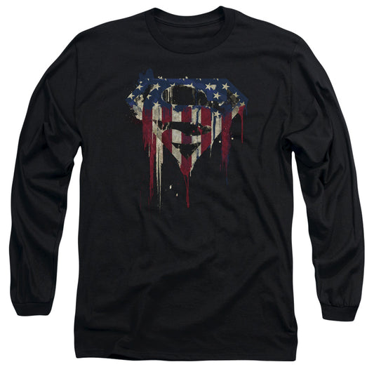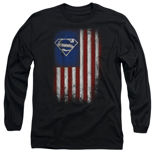 Superman Old Glory Shield Mens Long Sleeve Shirt Black Officially Licensed