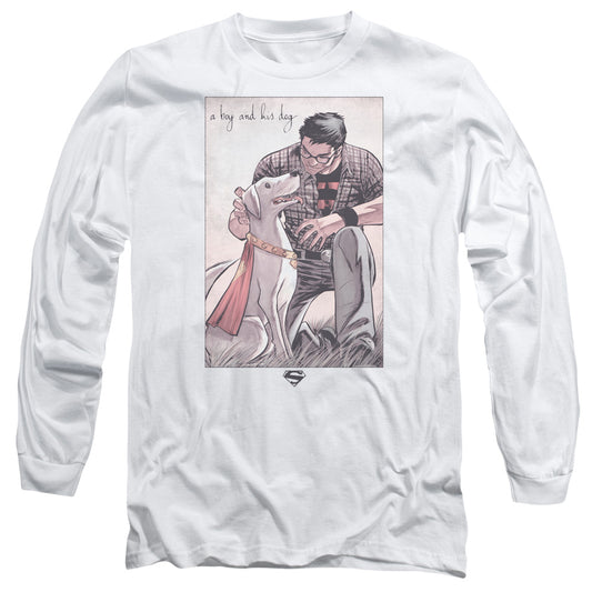 Superman Mans Best Friend Mens Long Sleeve Shirt White Officially Licensed