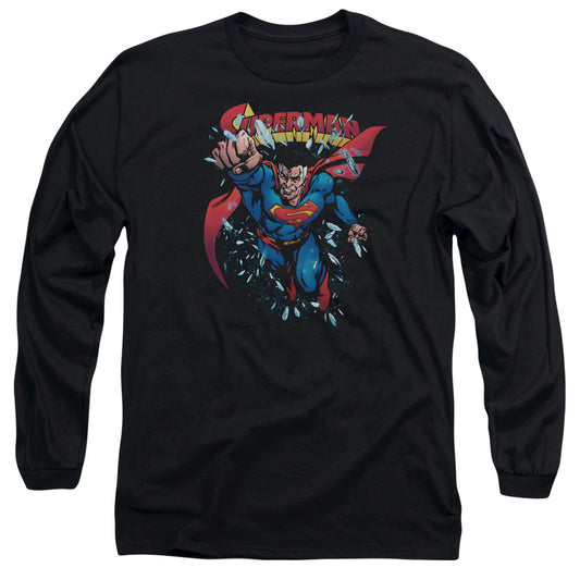 Superman Action One Mens Long Sleeve Shirt Black Officially Licensed