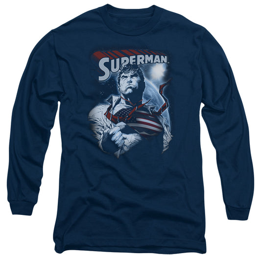 Superman Honor And Protect Mens Long Sleeve Shirt Navy Officially Licensed