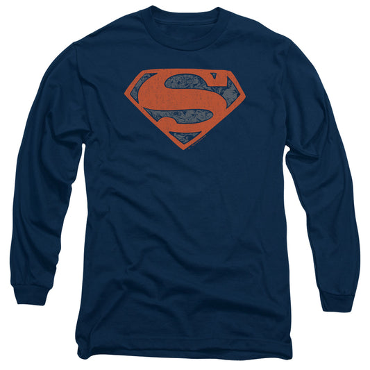 Superman Rusted Shield Mens Long Sleeve Shirt Navy Officially Licensed