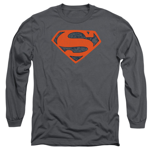 Superman Man Of Steel Shield Mens Long Sleeve Shirt Charcoal Officially Licensed
