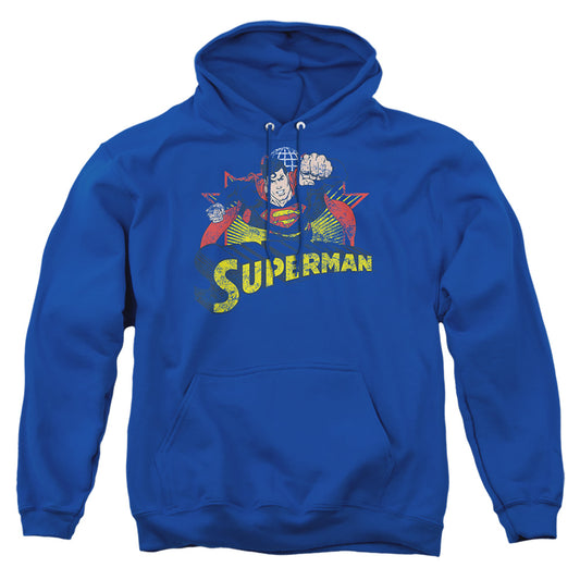 Justice League Of America Superman Rough Distress Mens Hoodie Royal Blue Officially Licensed