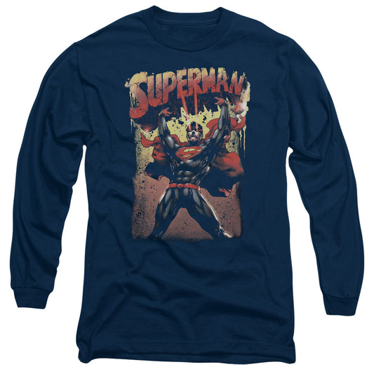 Superman Chain Breaking Mens Long Sleeve Shirt Navy Officially Licensed