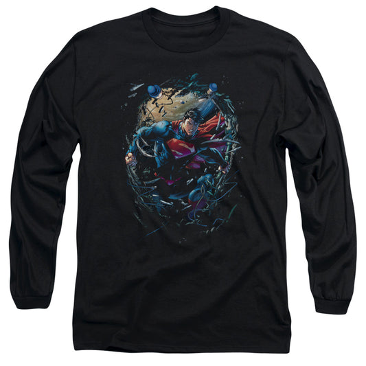 Superman Breaking Space Mens Long Sleeve Shirt Black Officially Licensed