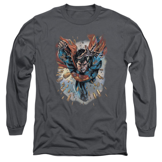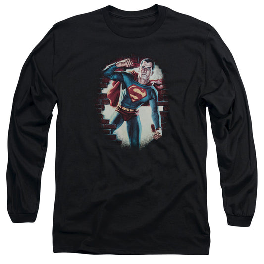Superman Blasting Through Mens Long Sleeve Shirt Black Officially Licensed