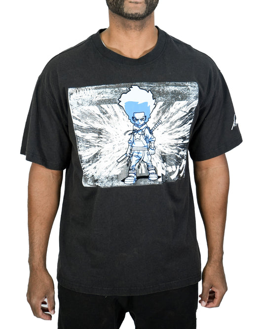The Boondocks Huey Samurai Warrior Oversized Black Acid Wash Mens T Shirt