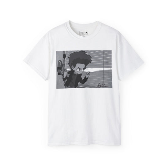 The Boondocks - Huey Packing Heat Black And White Eco Mens T Shirt