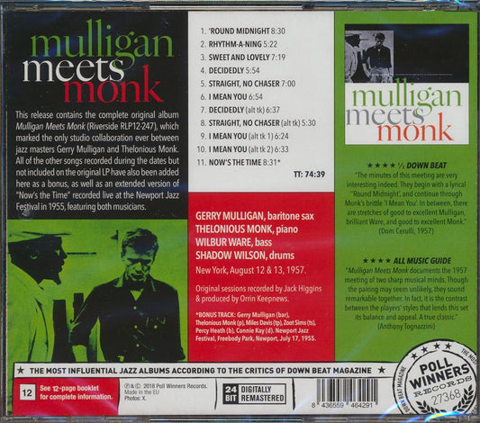 Gerry Mulligan Thelonious Monk Mulligan Meets Monk +bonus track incl 12 page booklet remastered 24 bit mastering Music CD