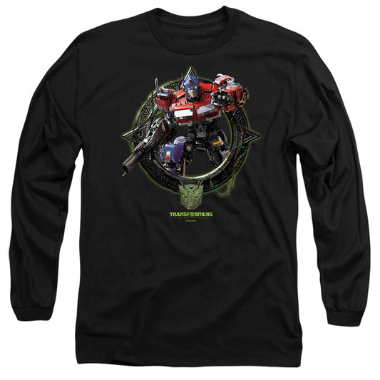 Transformers Optimus Prime Circle Frame Mens Long Sleeve Shirt Black Officially Licensed