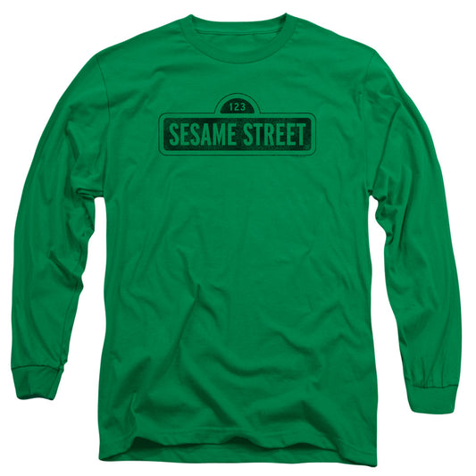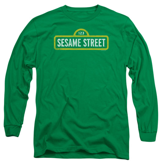 Sesame Street Rough Logo Mens Long Sleeve Shirt Kelly Green Officially Licensed