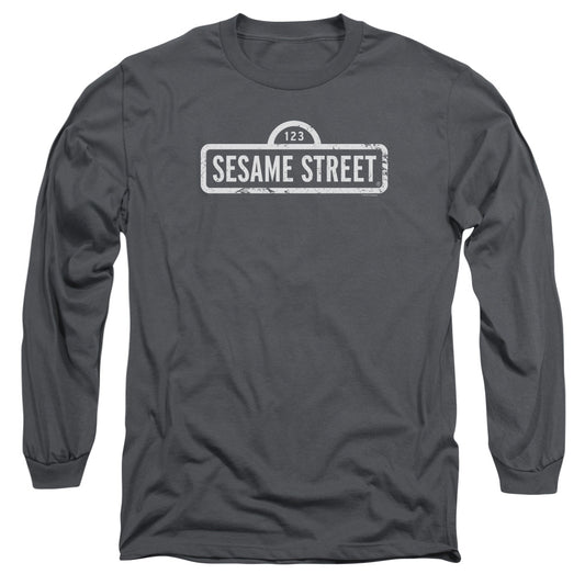 Sesame Street One Color Logo Mens Long Sleeve Shirt Charcoal Officially Licensed