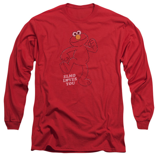 Sesame Street Elmo Loves You Mens Long Sleeve Shirt Red Officially Licensed