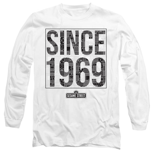 Sesame Street Since 1969 Pattern Mens Long Sleeve Shirt White Officially Licensed