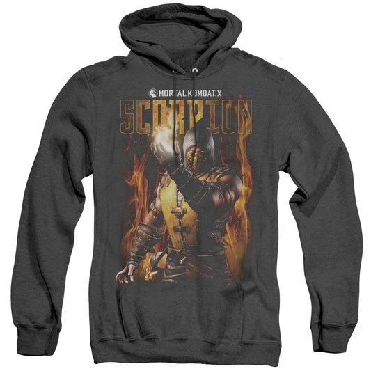 Mortal Kombat 11 Scorpion Flames Mens Heather Hoodie Black Officially Licensed