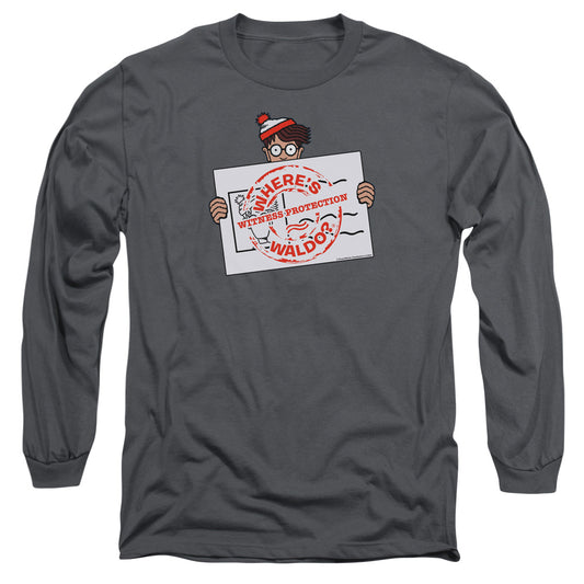 Wheres Waldo Witness Protection Mens Long Sleeve Shirt Charcoal Officially Licensed