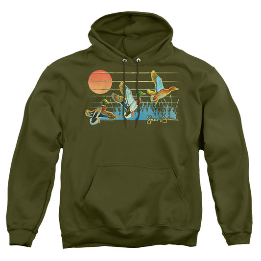 Wild Wings Three Ducks Mens Hoodie Military Green
