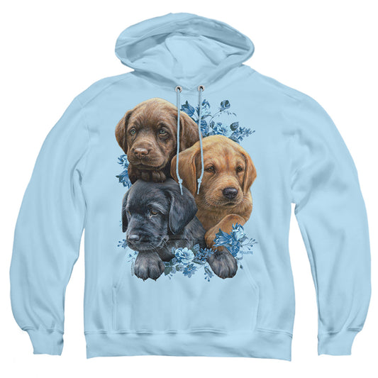 Wild Wings Puppy Pile Mens Hoodie Light Blue